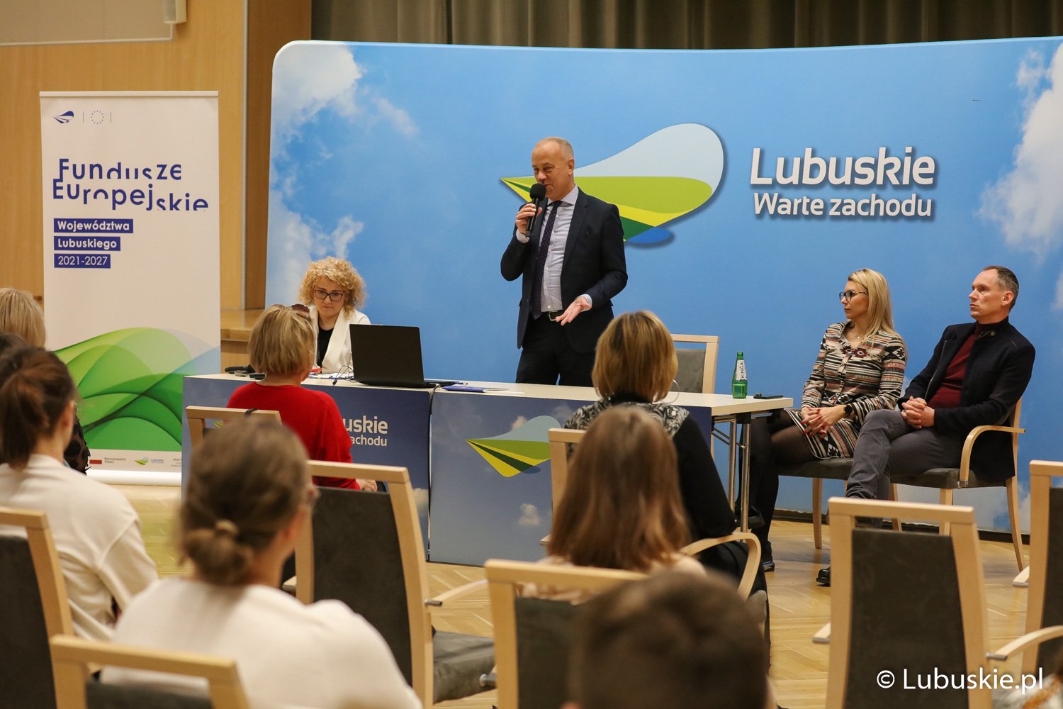 - Urząd marszałkowski to ciekawe miejsce pracy. Dowiecie się jak funkcjonuje, czym zajmuje się zarząd województwa i poszczególne departamenty, a także, co się dzieje jeśli chodzi o wydatkowanie środków Unii Europejskiej. To bowiem jedno z bardzo ważnych zadań samorządu województwa, które w szczególnie silny sposób oddziałuje na nasze otoczenie. To są ogromne kwoty, które posłużą do zrealizowania bardzo wielu ważnych projektów w województwie lubuskim, m.in. dotyczących szkolnictwa. To taka lekcja obywatelskości w terenie, poza szkołą i książkami, to inspiracja do wielu działań społecznych, postaw obywatelskich i wyborów kierunków działania – mówił do młodzieży na początku spotkania członek zarządu, Marcin Jabłoński.
