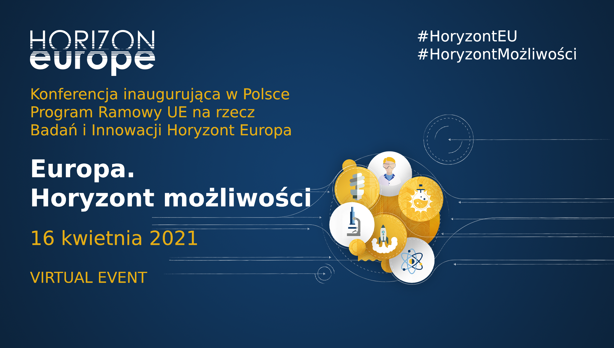Konferencja pod hasłem „Europa. Horyzont możliwości”, otwierająca w program odbędzie się 16 kwietnia 2021 r. w formule on-line. Jest adresowane zarówno do beneficjentów programów ramowych UE, jak i do wszystkich zainteresowanych realizacją innowacyjnych projektów.